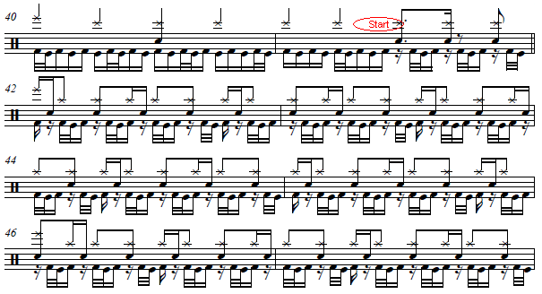 The "Herta" pattern is displaced by half a bar because of the lead-in to the next section.