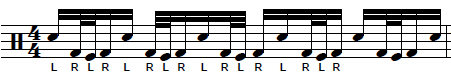 Then add the cymbal 8th notes with the right hand.