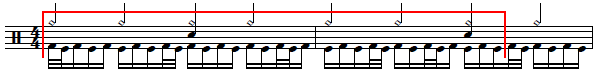 The double bass drum pattern is a sequence which is 27 16th notes in length.