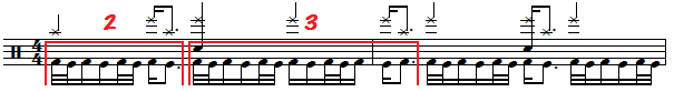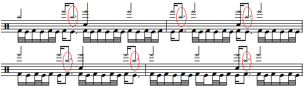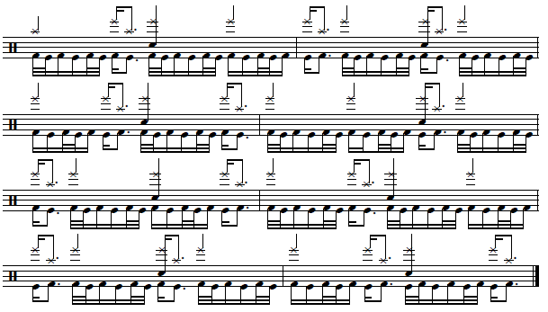 Another thing to remember also is the cymbal accents at the end of every "Herta" phrase, which happens on the 2nd 16th note of any particular beat.
