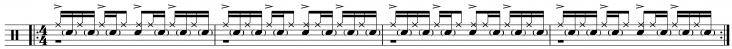 Notice there is no ghost notes around the accent snare note - on beat 3. This is because these notes are impractical to play