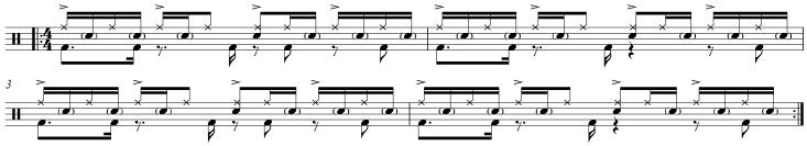 as a bass drum or cymbal. Make sure that 'no flamming' occurs. This will also ruin the groove. You have to be very accurate with your hits in order to do this.